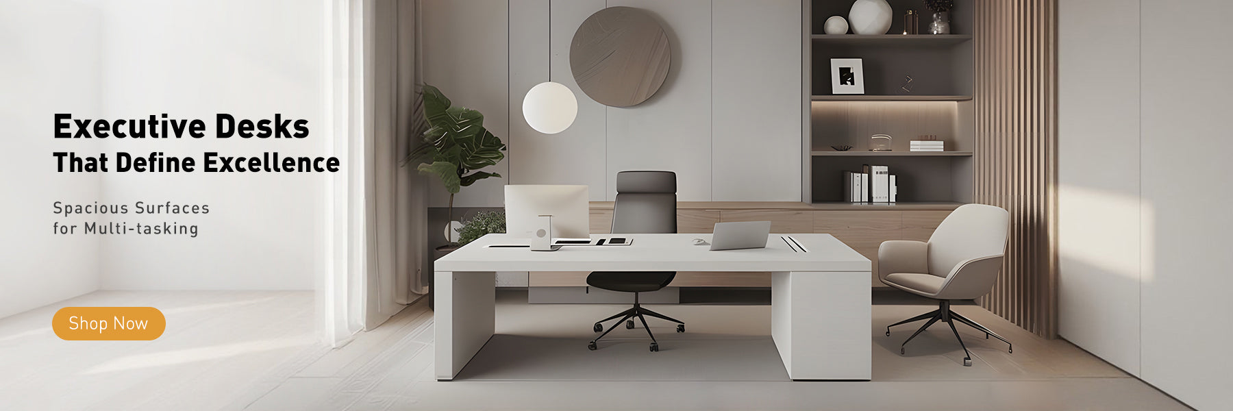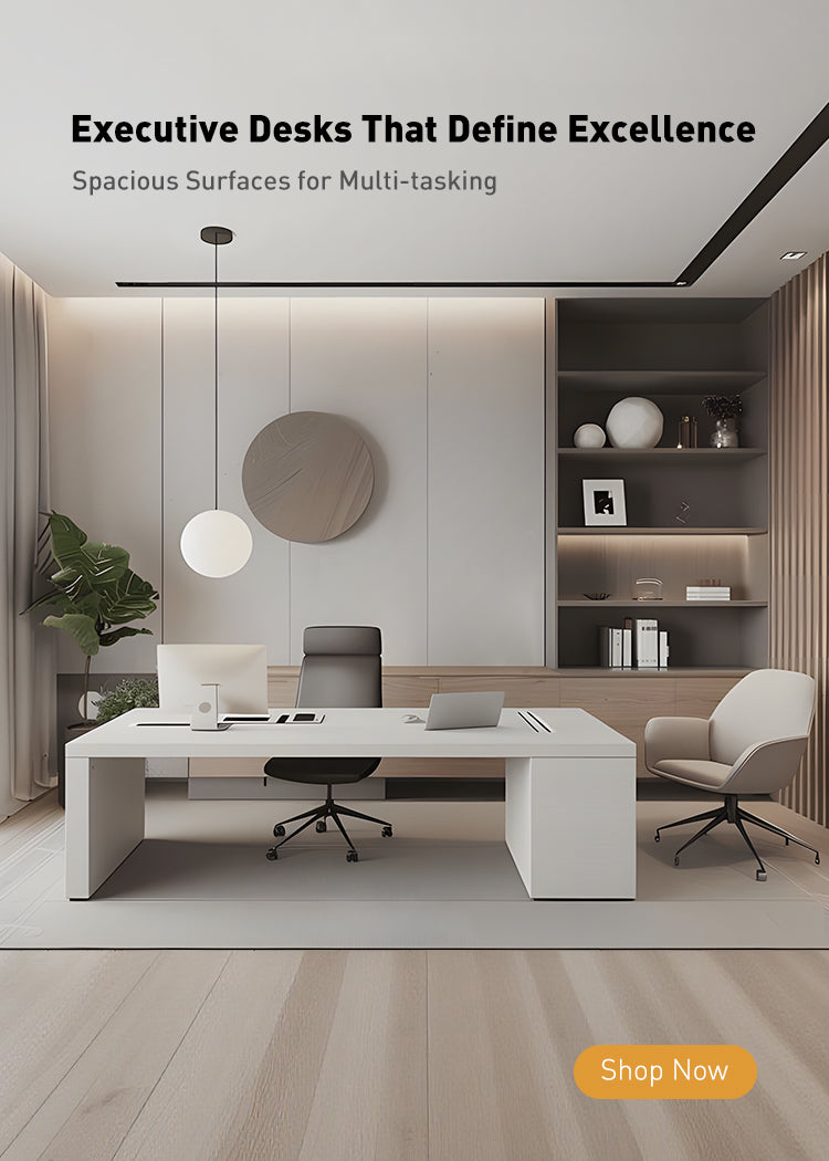 Plosia executive desks combine classic and modern designs, offering spacious work areas, built-in storage, and ergonomic support to enhance office experience and productivity. Whether traditional solid wood or adjustable height electric models, Plosia creates professional and efficient workspaces that convey authority and style.
