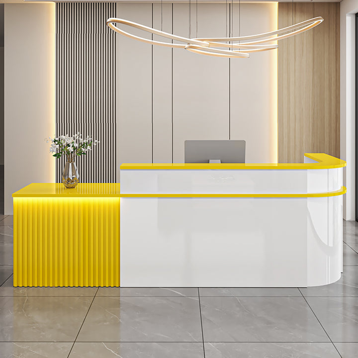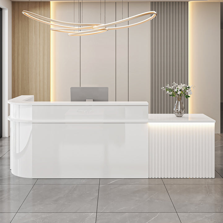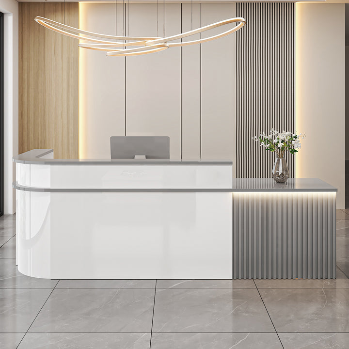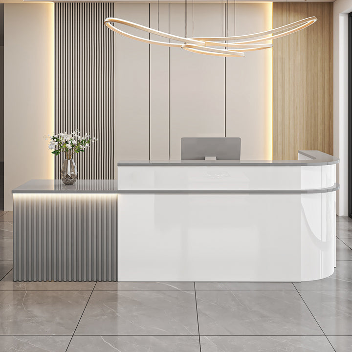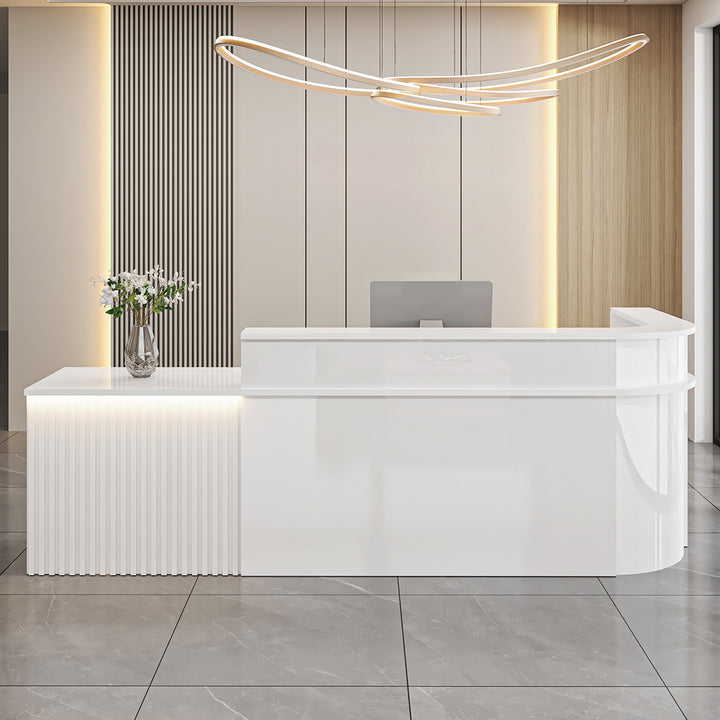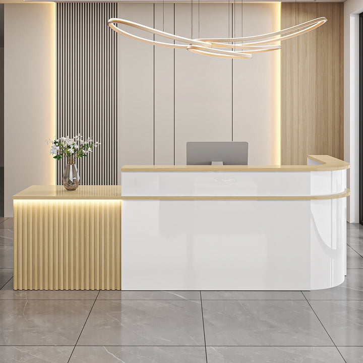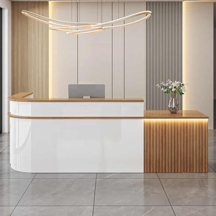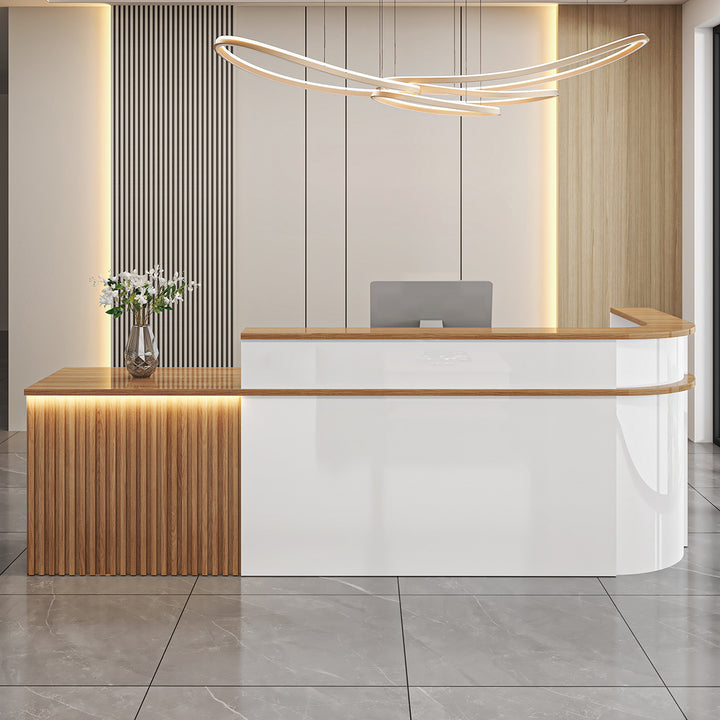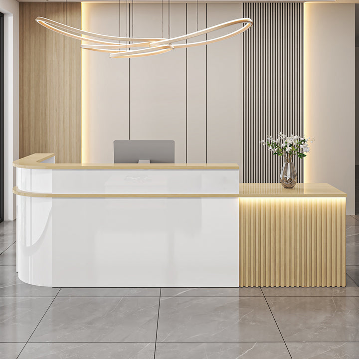 L-Shaped Curved Reception Desk – Multi-Purpose Counter for Salons, Cafes, and Offices