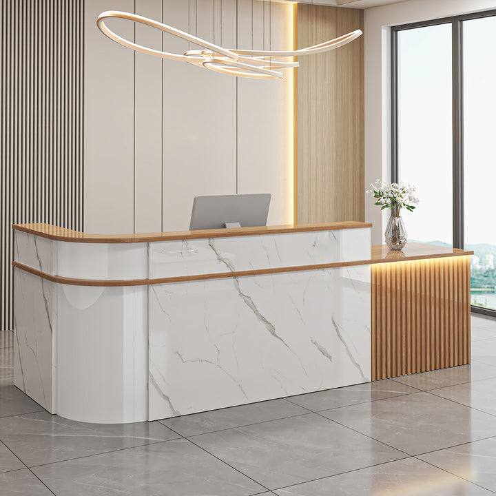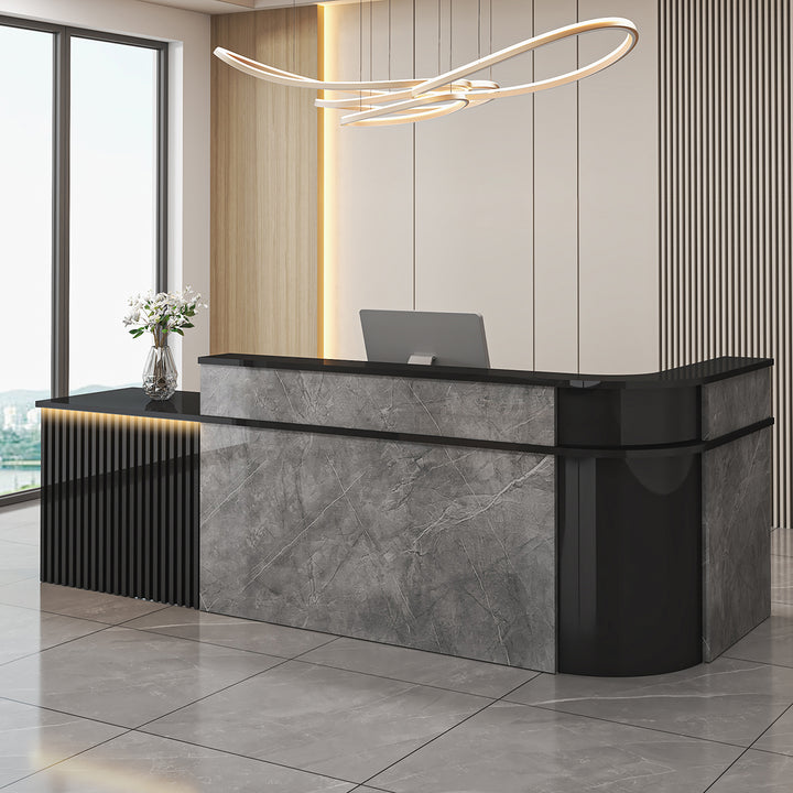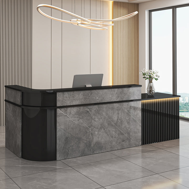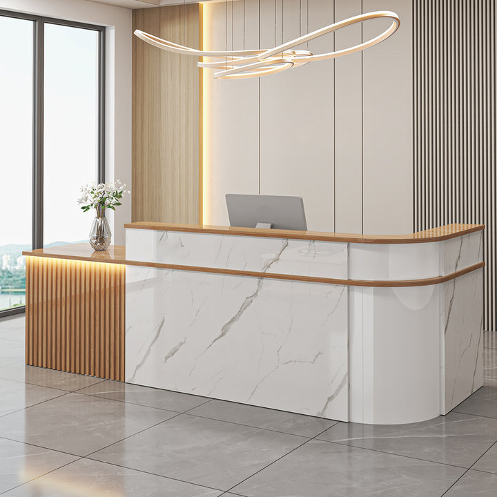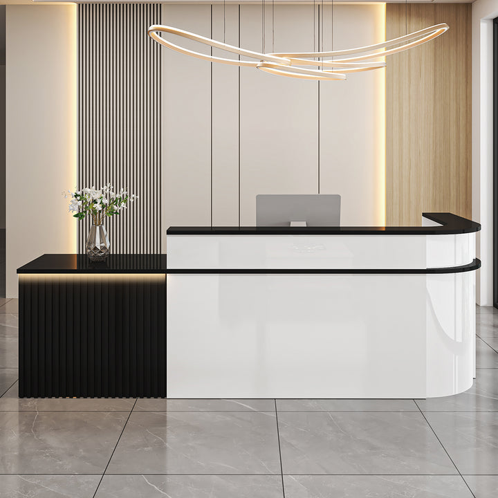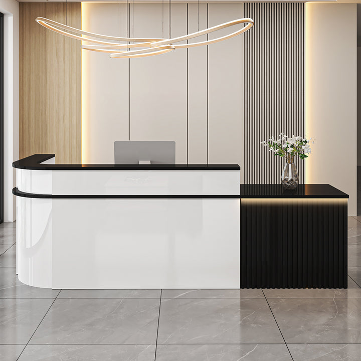 - L-Shaped Curved Design – Perfect for reception corners and customer-facing counters