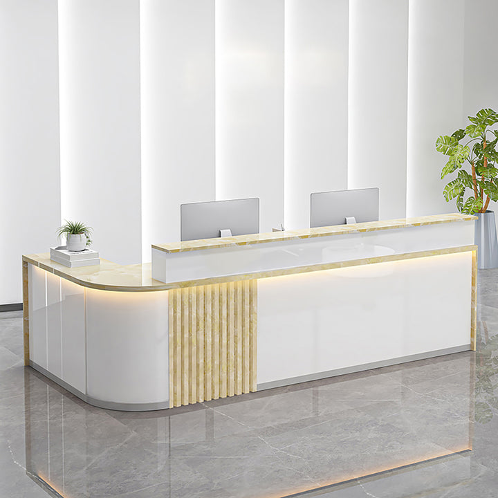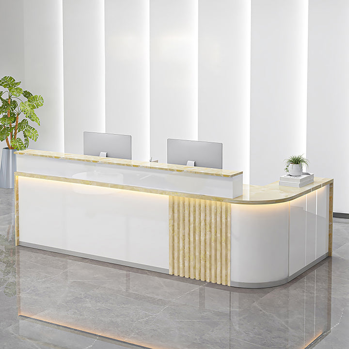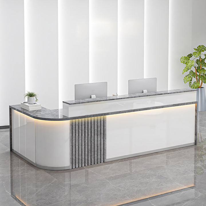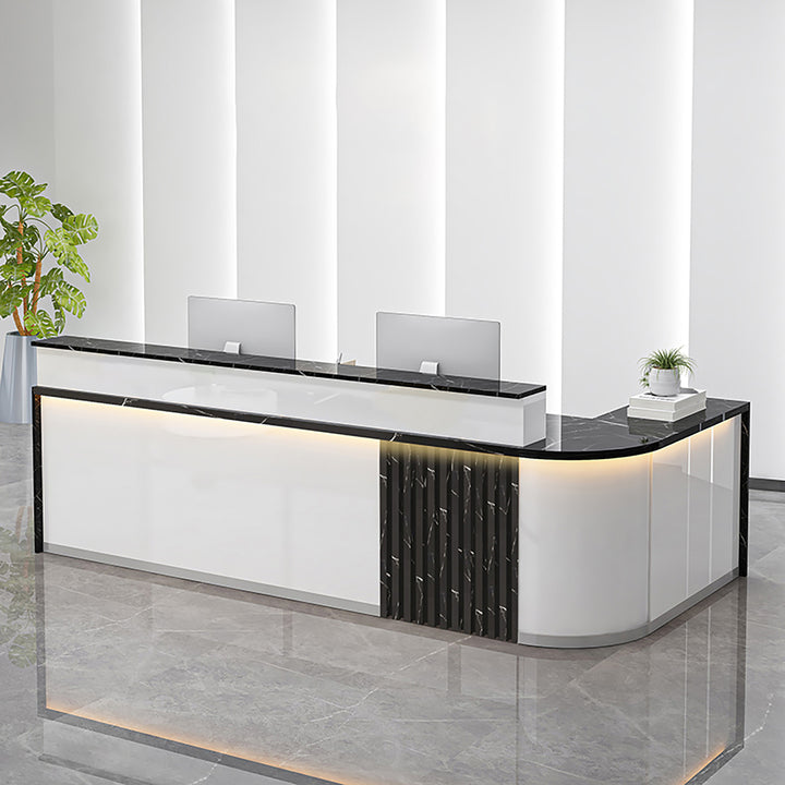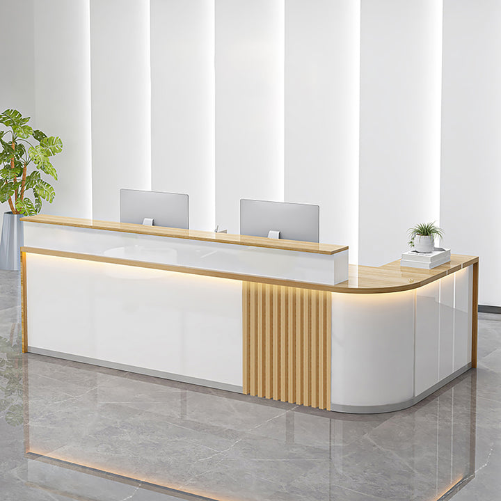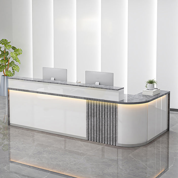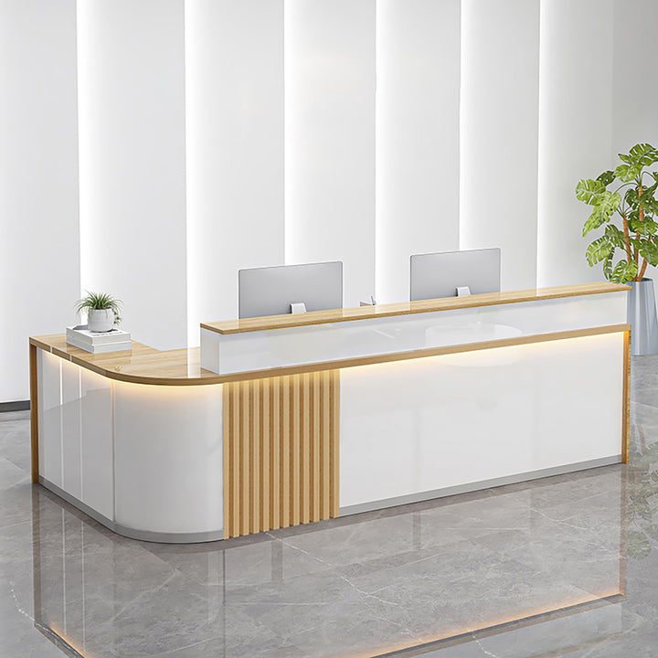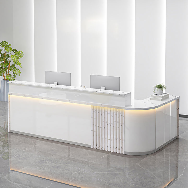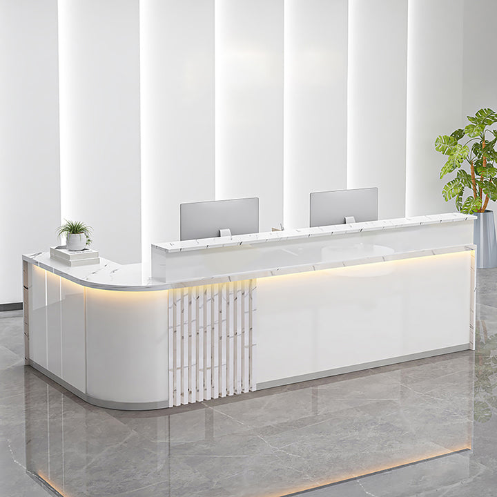 Modern Curved L-Shaped Reception Desk – Custom Salon and Office Counter 1.2-4m White Reception Desks