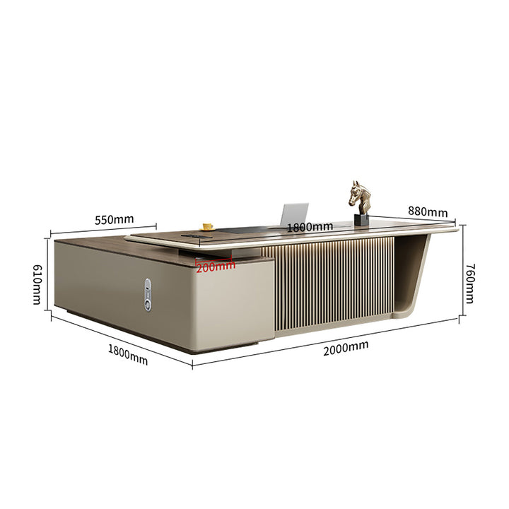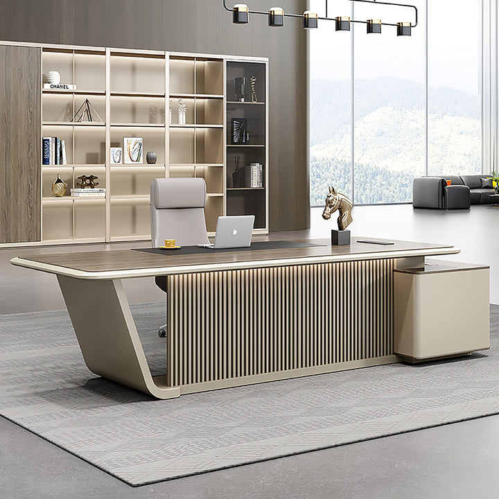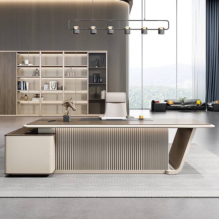 Contemporary Executive Desk with 5cm Thick Desktop, Hidden Cable Box & Optional Filing Cabinet