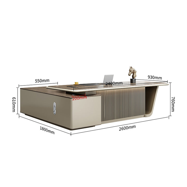 Modern Executive L-Shaped Desk Set – 2m–2.6m Office Desk with Storage, Lockable Drawers Matching Chair