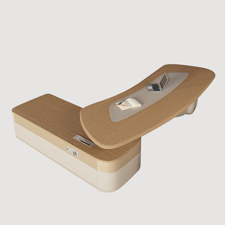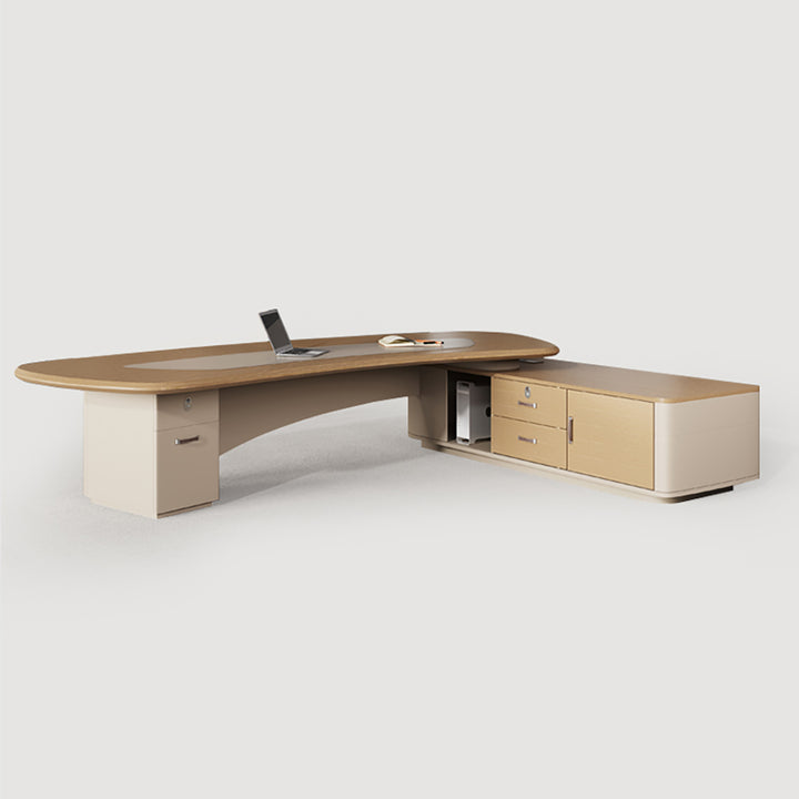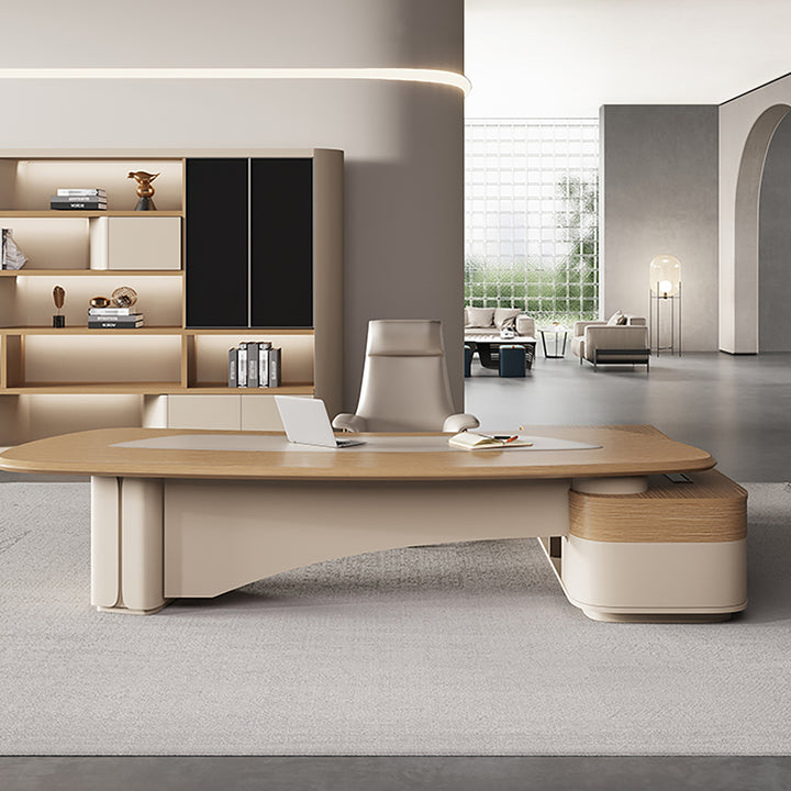 Modern Executive Office Desk – Curved Design with 5cm Thick Desktop & Painted Metal Legs