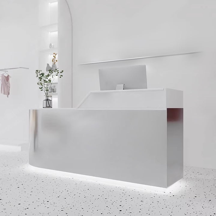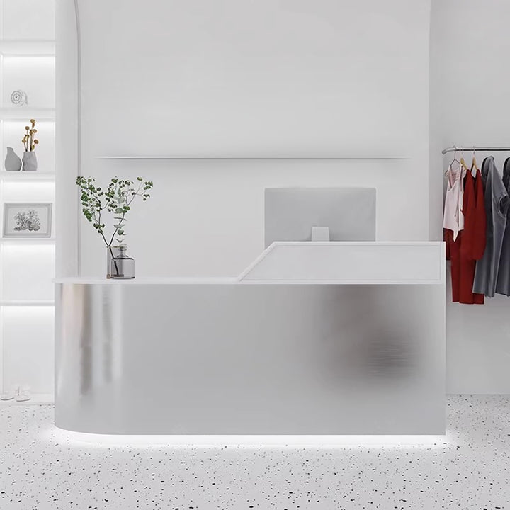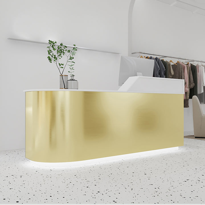 Modern Stainless Steel Reception Counter for Boutiques & Salons Curved Front Desk