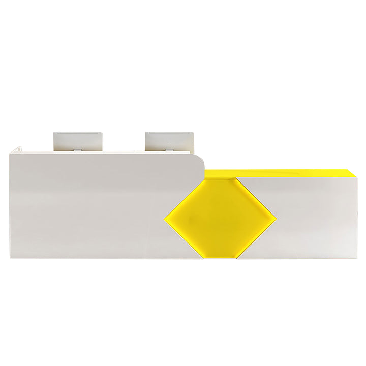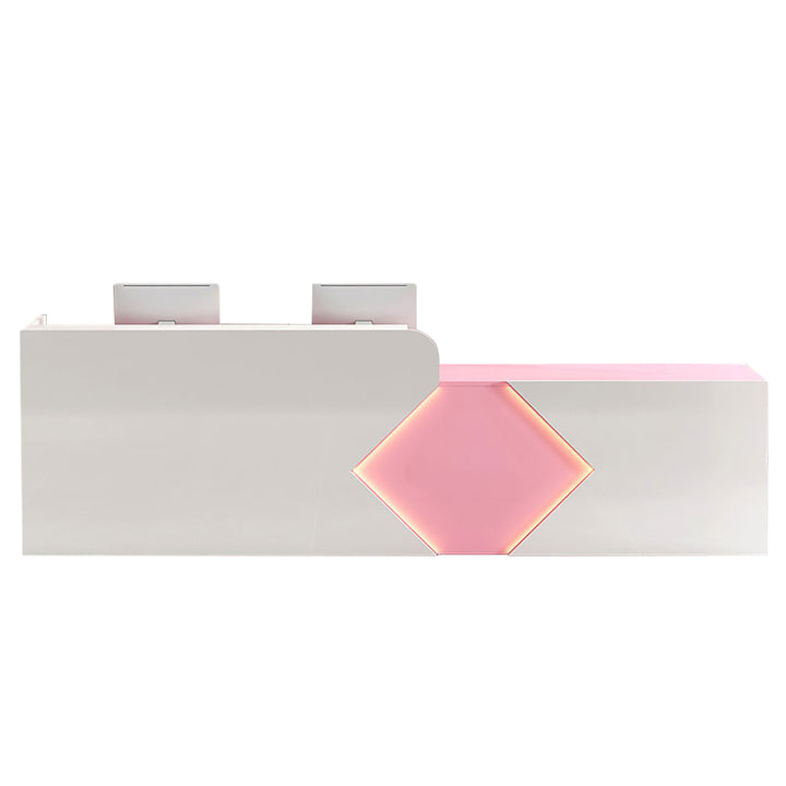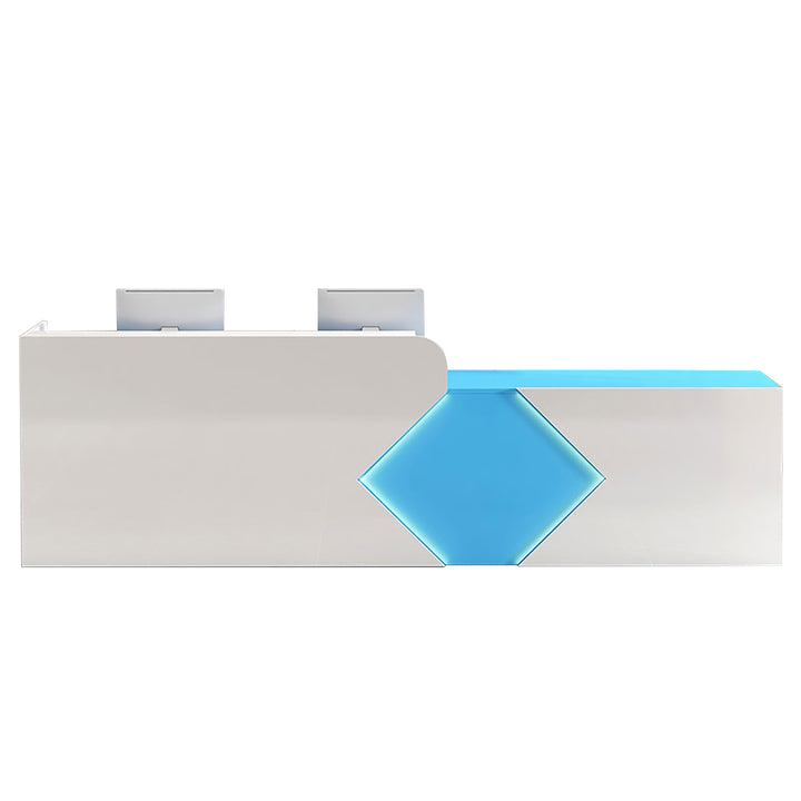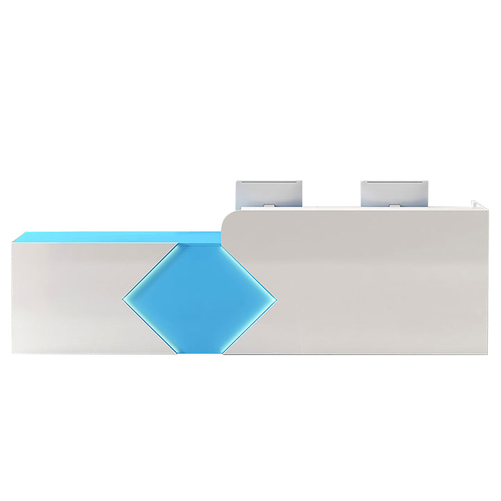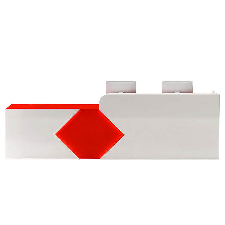 The design focuses on functionality and aesthetic appeal—providing both a professional front-of-house presence and practical workspace behind the counter. Whether you need a minimalist white look or a bold two-tone finish, this desk delivers flexibility and presence.